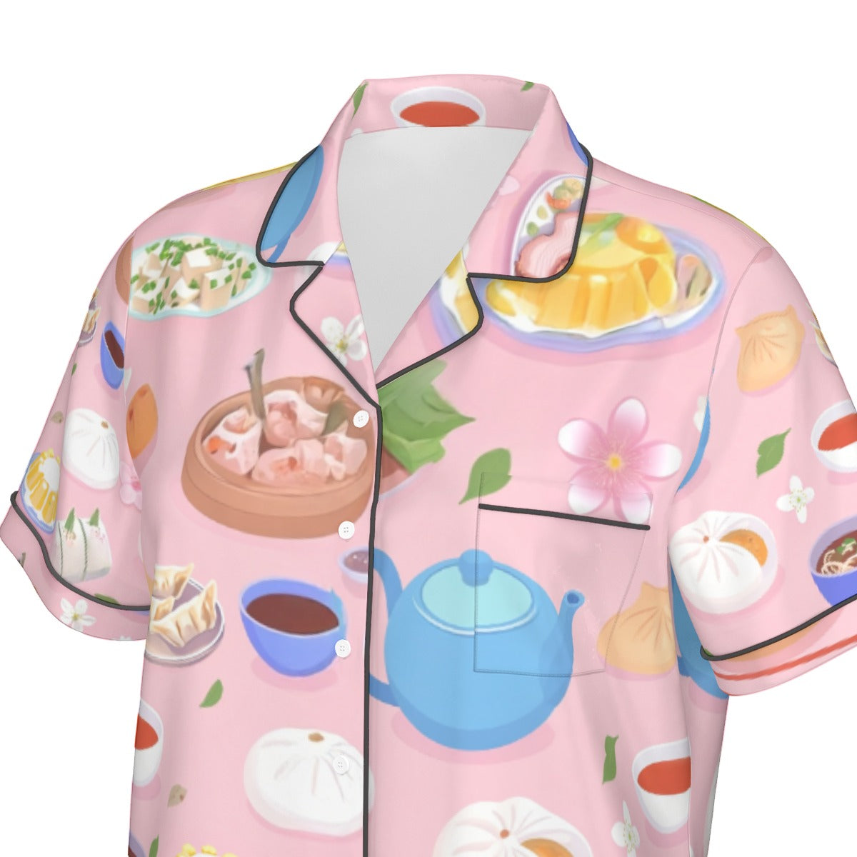 - Women's pajama set, short sleeve, splice edge, with button closure, with chest pocket