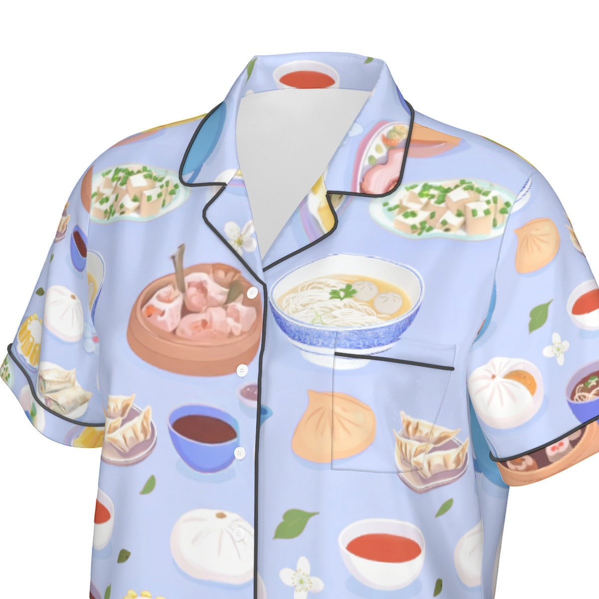 - Women's pajama set, short sleeve, splice edge, with button closure, with chest pocket